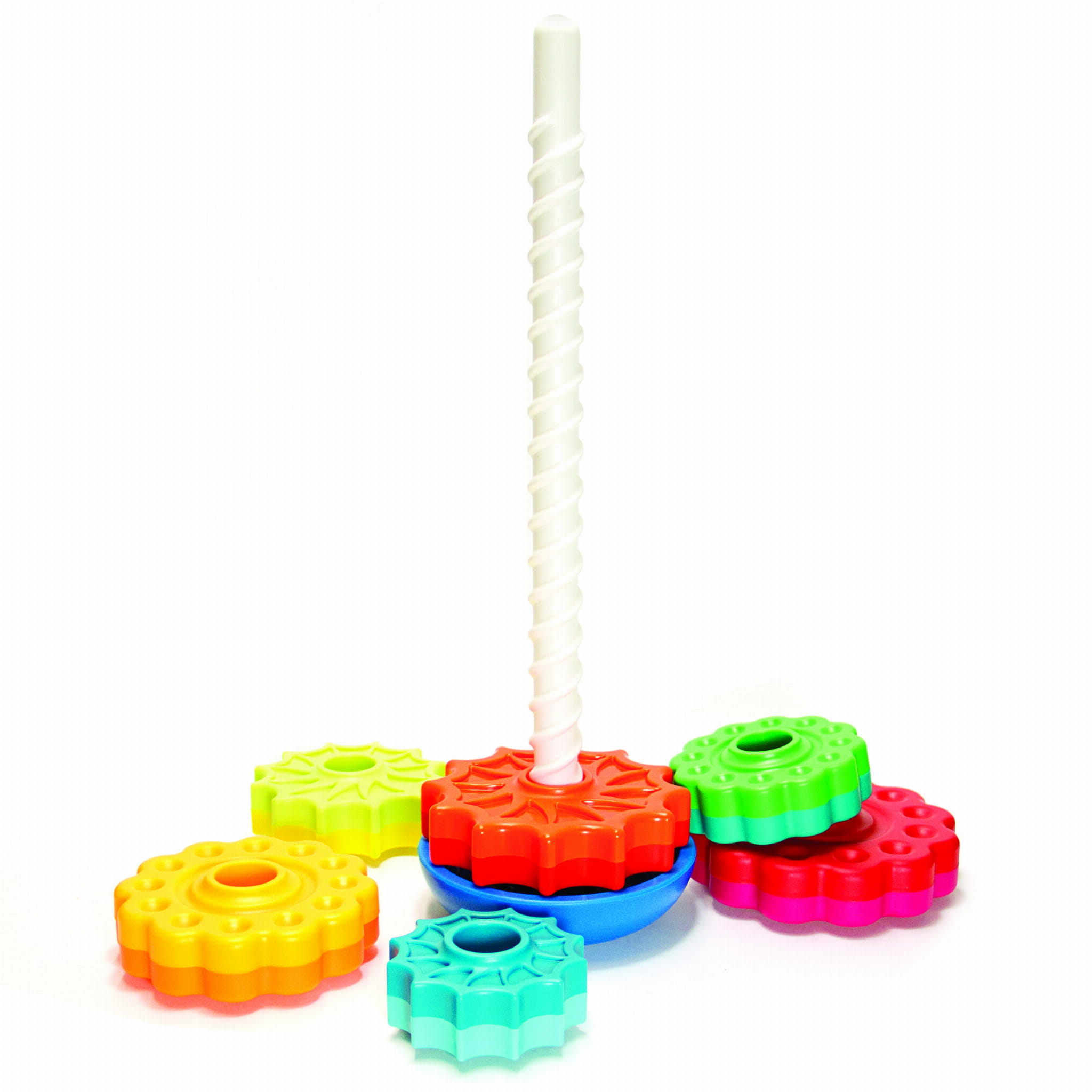 Zakręcona wieża SpinAgain od Fat Brain Toys to udoskonalona wersja znanej od lat piramidki. W nowej odsłonie wieża nie tylko wymaga od dziecka, by ułożyć elementy od największego do najmniejszego i trafić słupkiem w otwór, ale także pokazuje zasadę działania śruby, czy mieszanie się kolorów (gdy dwukolorowe krążki zjeżdżają na dół).