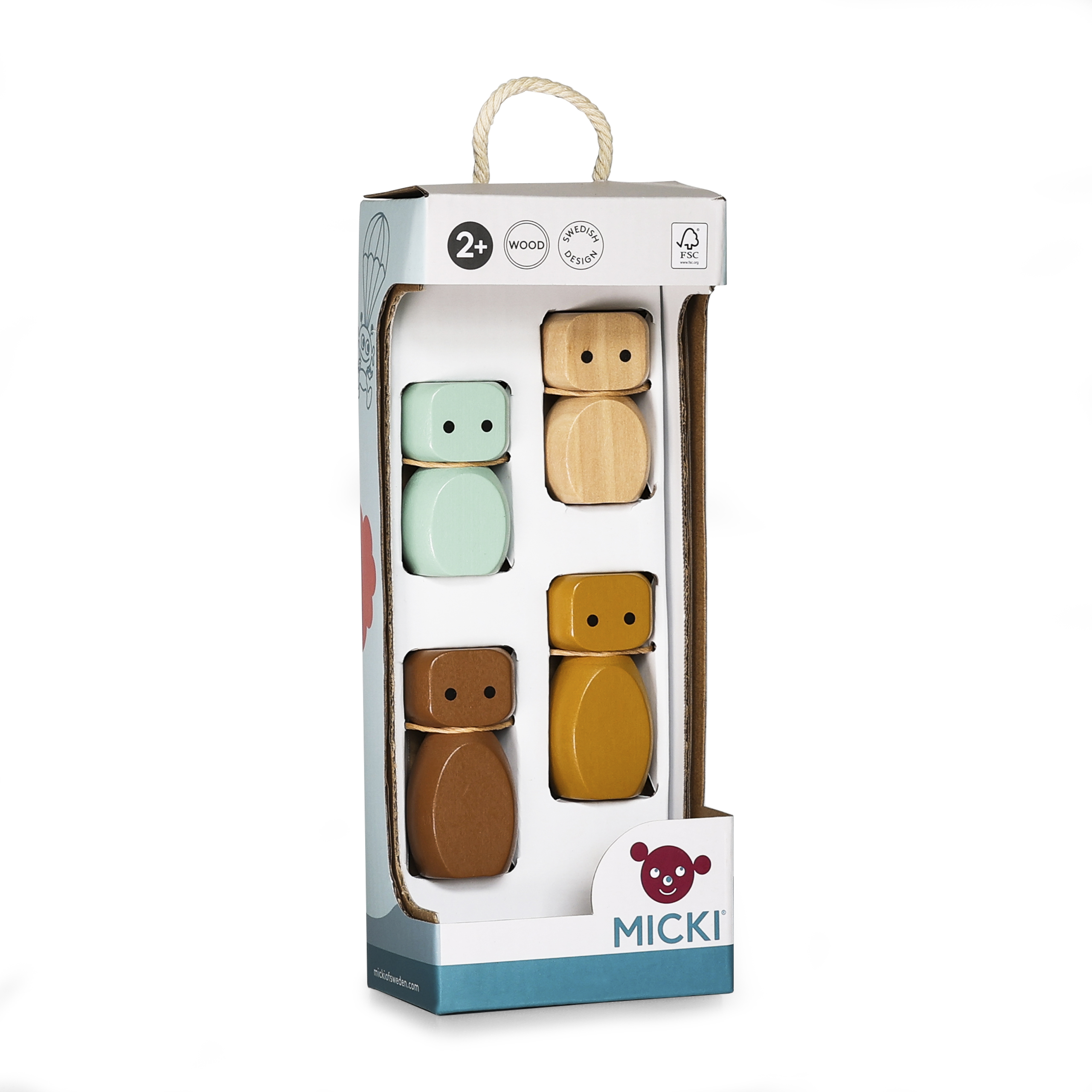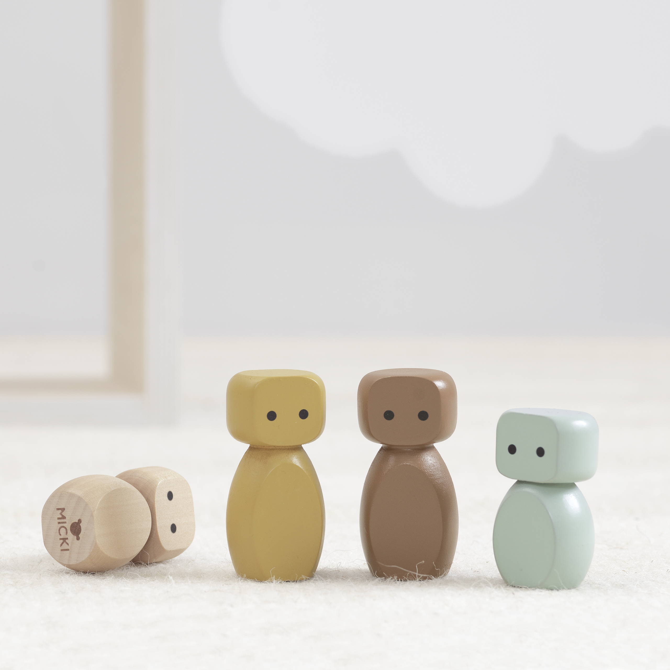 Zestaw 4 uroczych abstrakcyjnych ludzików szwedzkiej marki Micki zachęca do odgrywania ról, opowiadania historii, gwarantuje udaną zabawę i wspiera prawidłowy rozwój Twojego dziecka. Radosny design inspiruje kreatywność maluszka i zaprasza do zdobywania nowych umiejętności poznawczych oraz doskonalenia koordynacji ruchowej. W tym zestawie znajdują się 4 drewniane figurki w pastelowych kolorach, które nie mogą się doczekać wspólnej zabawy!