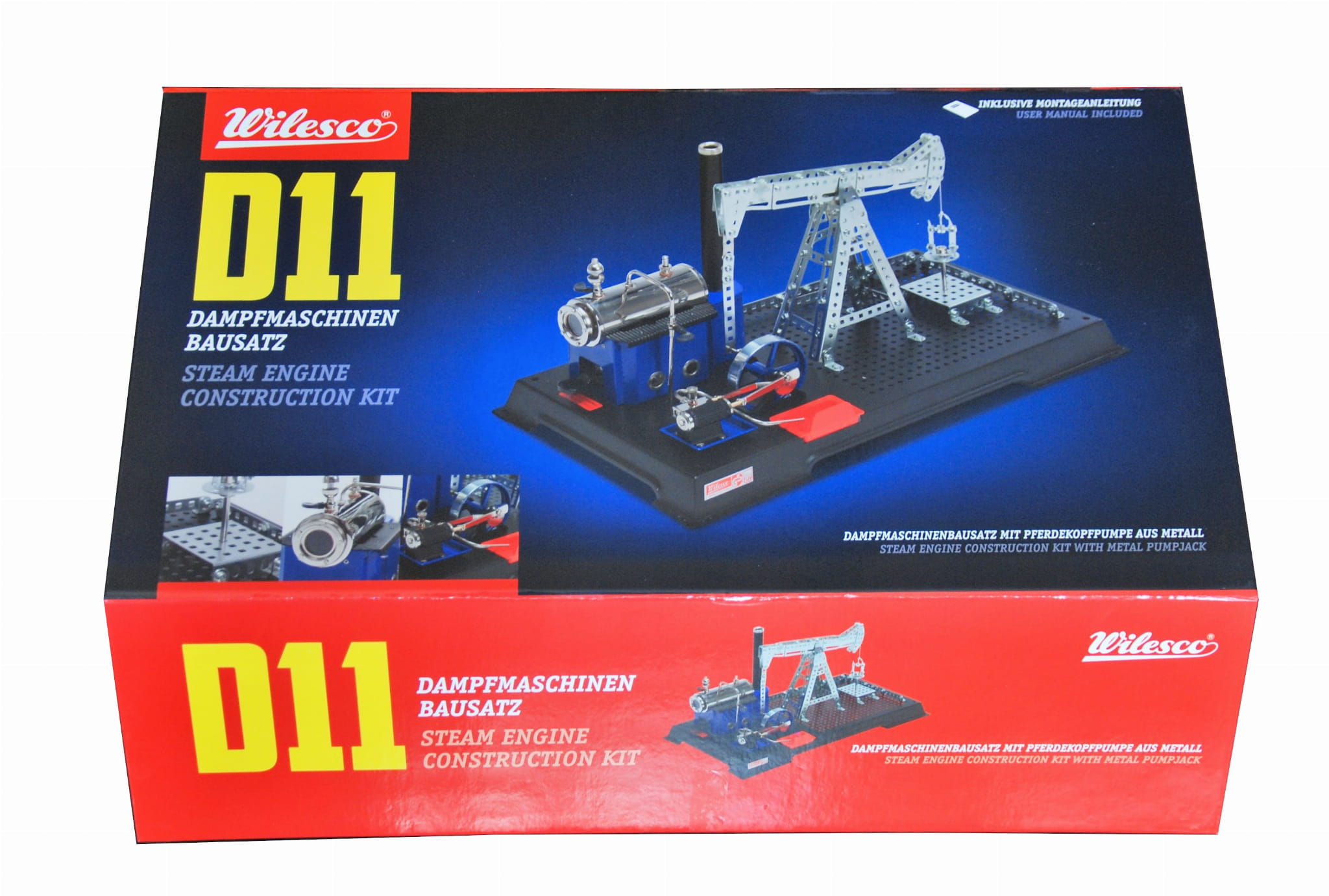 Zestaw D11 składa się z maszyny parowej Wilesco oraz zestawu Tronico, z którego można zmontować kiwon - pompę żurawiową stosowaną m.in. do wydobywania ropy naftowej.