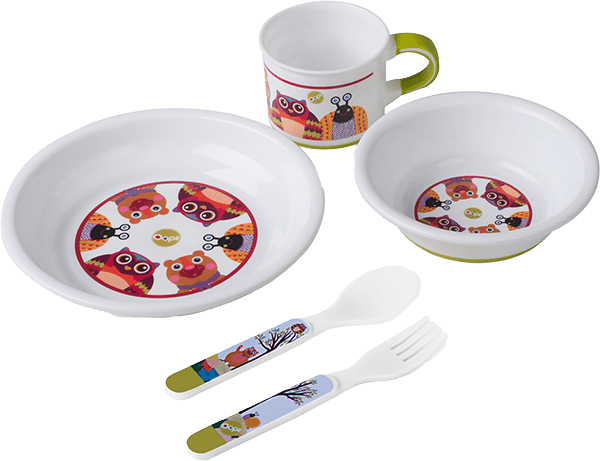Zabawny i praktyczny zestaw dla dzieci, które dopiero zaczynają swoją przygodę z posiłkami stałymi. Wykonane z bezpiecznego tworzywa, z antypoślizgowym spodem.