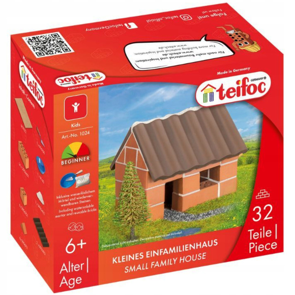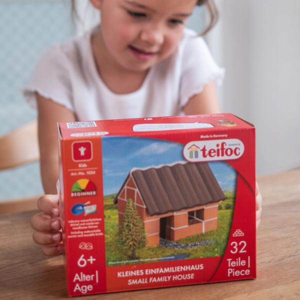 Domek rodzinny z cegiełek marki Teifoc, w zestawie 32 elementy - oryginalna zabawka konstrukcyjna z prawdziwymi ceramicznymi cegiełkami, zestaw 1024-TEPlanujesz w przyszłości zostać konstruktorem? Zbuduj ogrodowy domek z załączonej instrukcji. Chcesz coś samodzielnie zaprojektować? Brakuje Ci elementów? Zawsze można wykorzystać dodatkowe cegiełki bazowe dostępne w naszym sklepie, aby urozmaicić i powiększyć budowlę. A może połączyć kilka zestawów i stworzyć całą wioskę? Rozbudowując konstrukcje Twoja inwencja twórcza będzie się systematycznie rozwijać.