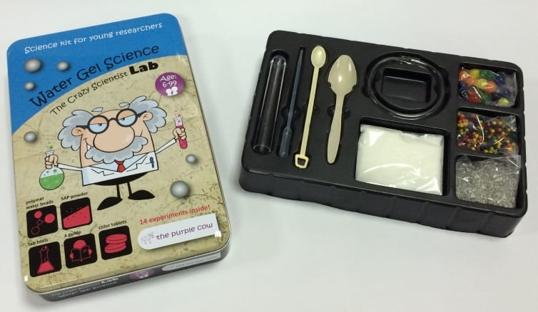 Zestaw jest skoncentrowany na eksperymentach z polimerowymi kulkami żelowymi. Dzięki niemu dzieci będą mogły zobaczyć jakie właściwości ma polimer, jak reaguje na różne ciecze i substancje, zmienia swój kształt, kolor, znika, ma właściwości szkła powiększającego. W jednym z eksperymentów można zrobić kolorową bransoletkę.