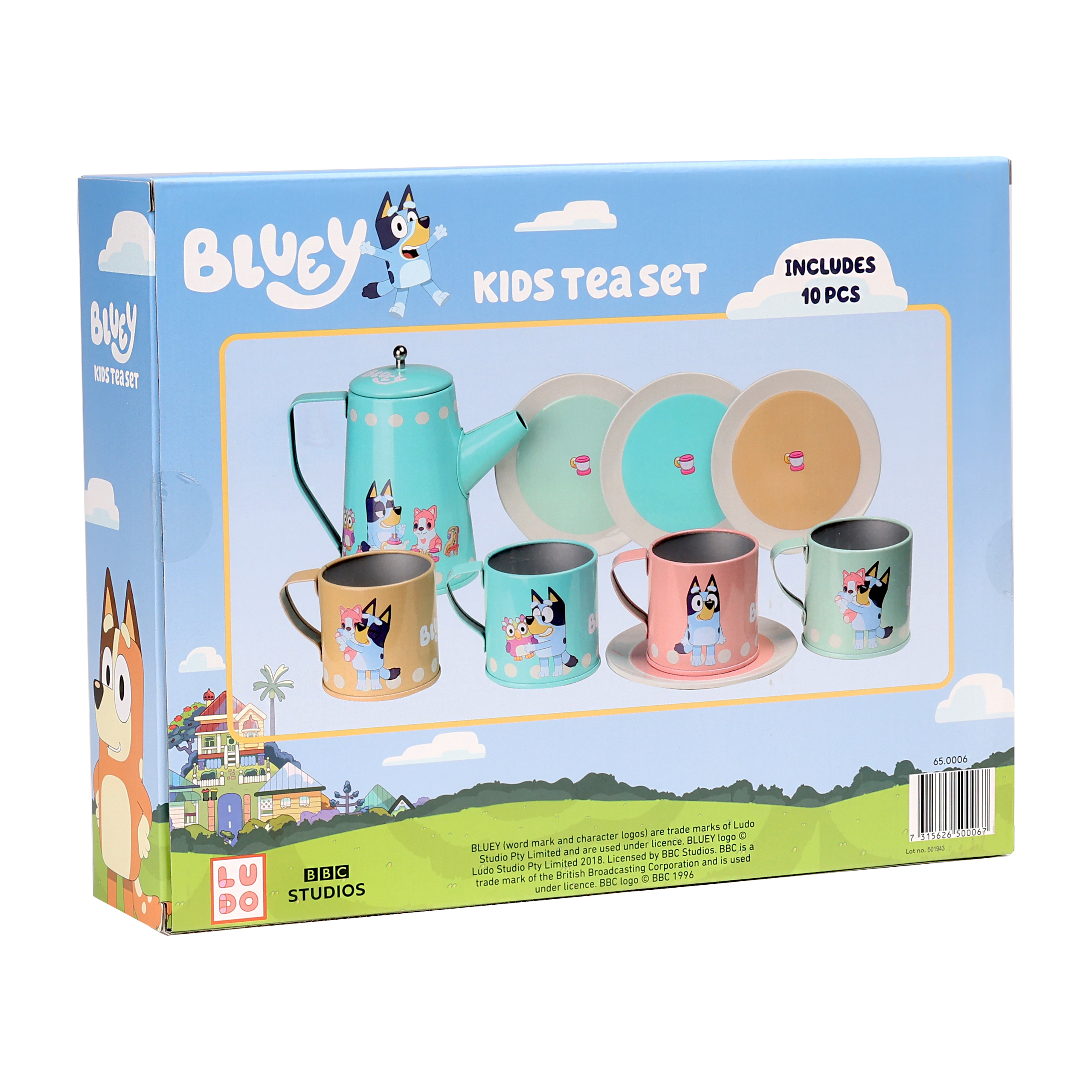 Bluey i jej przyjaciele zapraszają na zabawną herbatkę z tym kolorowym zestawem do herbaty. Różnorodne pastelowe kolory oraz urocze ilustracje rozwijają wyobraźnię Twojego dziecka i sprawiają, że zabawa jest jeszcze lepsza. Ten komplet naczyń zawiera: cztery kubki różnego koloru z innymi ilustracjami na każdym, cztery spodki w różnych kolorach i niebieski dzbanek z przykrywką. Zestaw zaprasza Twoje dziecko do odgrywania ról i zdobywania nowych doświadczeń w świecie Bluey.