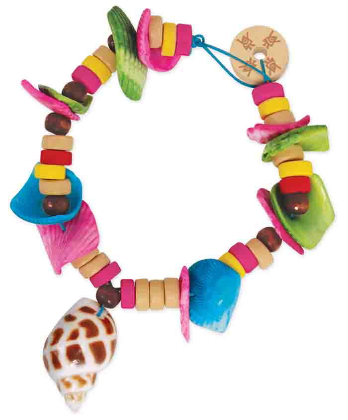 Zestaw do tworzenia biżuterii z muszelek i koralików. Każda modna dziewczynka powinna mieć taki zestaw. Dzięki niemu zrobi niepowtarzalne wielokolorowe bransoletki i naszyjniki kojarzące się z morzem i plażą.