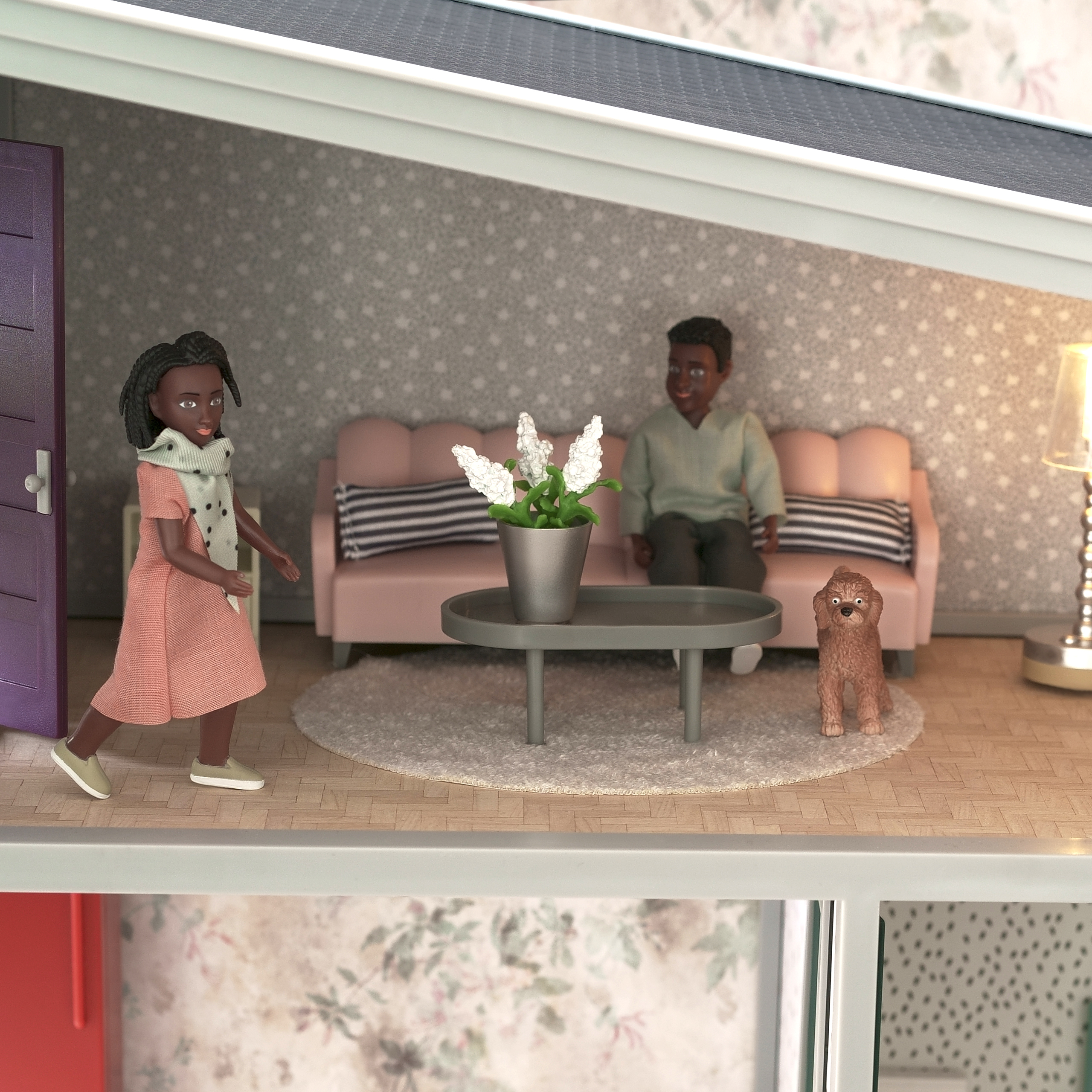 Przestronne domki dla lalek mają na ścianach artystyczne tapety szwedzkiej marki Sandberg, a bogata kolekcja dedykowanych lalek, mebli i elementów wyposażenia uwzględnia nawet różne rodzaje oświetlenia, co dodaje wyjątkowych wrażeń i realizmu do zabawy.