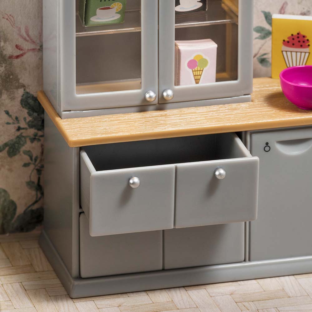Zestaw mebli kuchennych do domku dla lalek, kredens, kuchnia zabawka Lundby