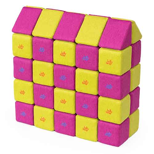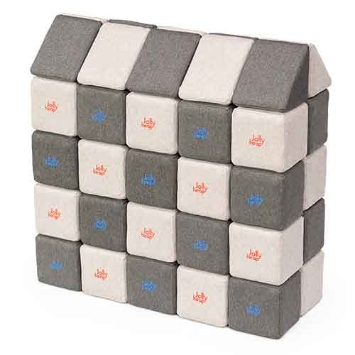 Klocki Jolly Heap wykonane są z tkaniny poliestrowej, wypełnione pianką poliuretanową, zawierają magnesy neodymowe. Dzięki temu są leciutkie , łatwe w utrzymaniu w czystosci. Można je odkurzać odkurzaczem, przecierać wilgotną szmatką, a nawet prać po 6-9 sztuk tego samego koloru w pralce programem krótkim 30 stopni.