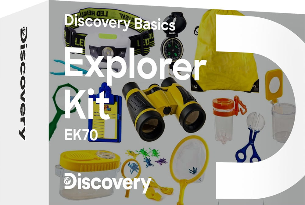 Zestaw młodego badacza Discovery Basics EK70 został zaprojektowany specjalnie dla odkrywców, którzy chcą dowiedzieć się jak najwięcej o otaczającym ich świecie i potrzebują do tego różnego rodzaju narzędzi. Zawiera on przyrządy optyczne, instrumenty służące orientacji, urządzenia do badań biologicznych, a nawet notatnik do zapisywania najbardziej niezwykłych odkryć. W zestawie jest plecak, w którym z łatwością zmieścisz wszystkie swoje rzeczy, co ułatwi podróżowanie.