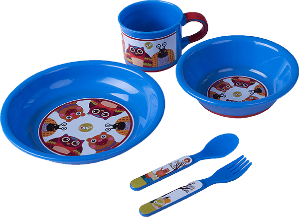 Zabawny i praktyczny zestaw dla dzieci, które dopiero zaczynają swoją przygodę z posiłkami stałymi. Wykonane z bezpiecznego tworzywa, z antypoślizgowym spodem.