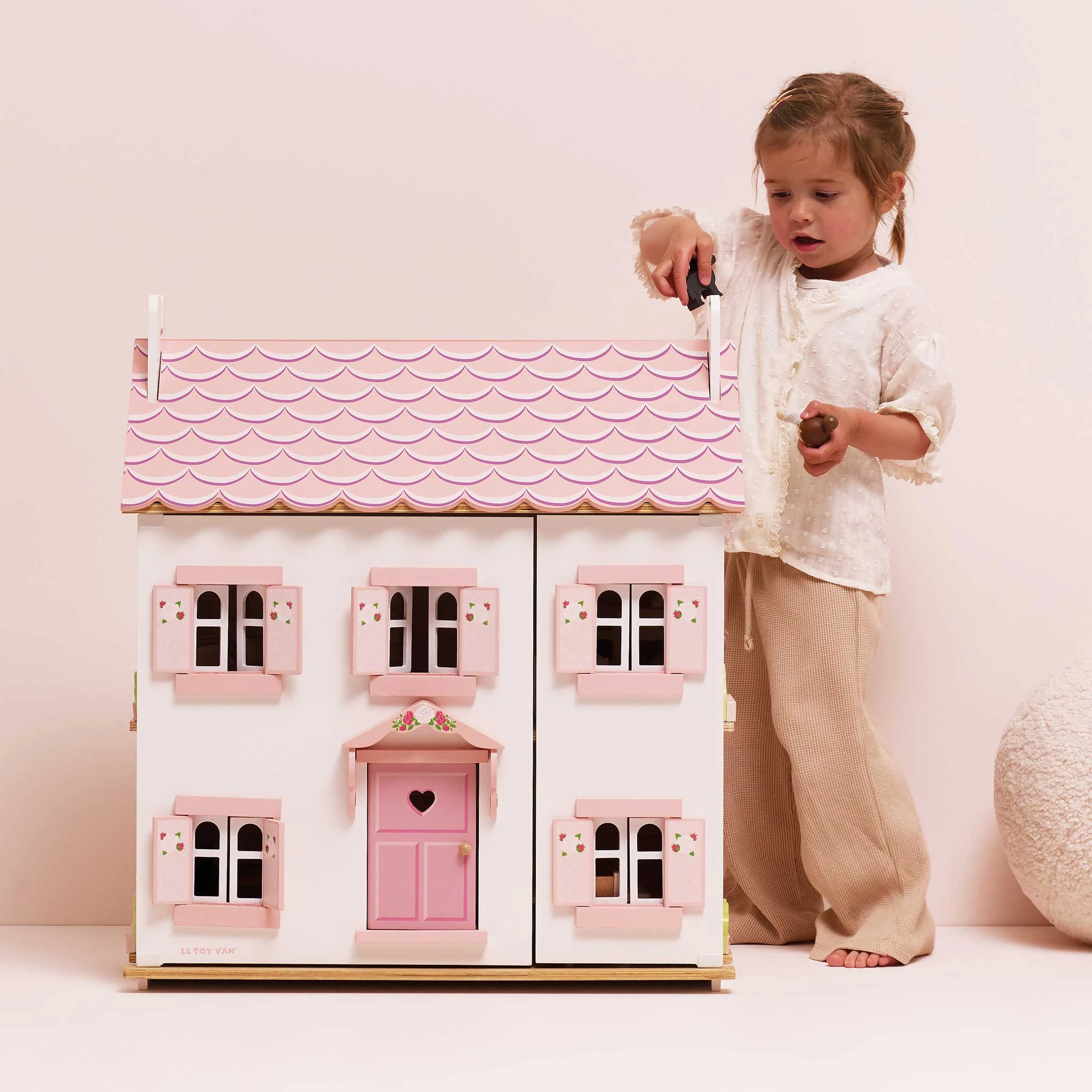 Atrakcyjny design i staranne wykonanie z uwzględnieniem wszystkich detali sprawiają, że zabawka bardzo realistycznie odzwierciedla wrażenia z życia w prawdziwym domu, dzięki czemu Twoje dziecko będzie miało jeszcze więcej inspiracji do długiej i kreatywnej zabawy. Wykonany ze zrównoważonego drewna certyfikowanego przez FSC®, pomalowany w pięknych pastelowych odcieniach pudrowego różu i bieli przy użyciu nietoksycznych farb na bazie wody, ten uroczy domek dla lalek stanowi idealny i przemyślany prezent na każdą okazję. Ta zabawka rozwija umiejętności społeczne, kreatywność i wyobraźnię, zdolności manualne, zręczność oraz koordynację podczas angażującej zabawy.