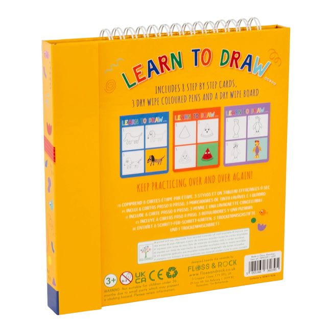 Wspaniały zestaw do nauki rysowania dla dzieci w prosty i zabawny sposób zachęci dziecko do rozpoczęcia przygody z nauką rysowania. Zestaw zawiera 8 grubych, błyszczących stron, 3 kolorowe suchościeralne pisaki z gumkami oraz sekcję do rysowania i kolorowania. Sposób narysowania każdej ilustracji przedstawiony jest w trzech prostych krokach, dzięki czemu nauka rysowania będzie dla każdego malucha łatwa i przyjemna. Zmazywalne strony pozwalają trenować bez końca. Zestaw składa się na płasko, posiada praktyczne magnetyczne zamknięcie i idealnie sprawdzi się w podróży. Zapraszamy do zabawy!