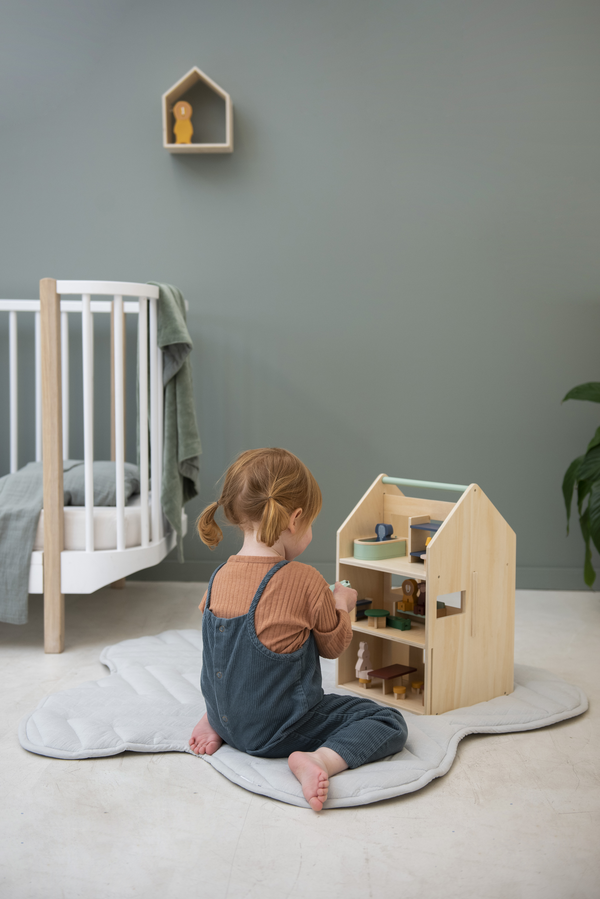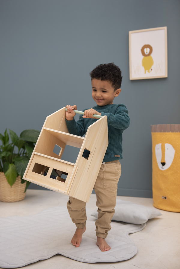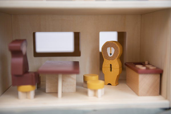Rozsuń ściany domku i rozpocznij przygodę w domku zwierzaków. Dzięki 6 uroczym zwierzakom i 13 fantastycznym akcesoriom meblowym najmłodsi mogą bawić się przez nieskończenie wiele godzin. Domek jest prosty w konstrukcji, pozostawiając dużo miejsca na dziecięcą kreatywność i wyobraźnię. Kiedy dziecko skończy zabawę, może zasunąć ściany domku na miejsce i włożyć wszystkie akcesoria do środka, tak aby nic się nie zgubiło. Dzięki górnemu uchwytowi można z łatwością przenieść domek w inne miejsce. Domek do zabawy i akcesoria wykonane są w 100% z drewna z certyfikatem FSC©. Wszystkie farby na tym produkcie są na bazie wody, bezpieczne dla dzieci i nietoksyczne.