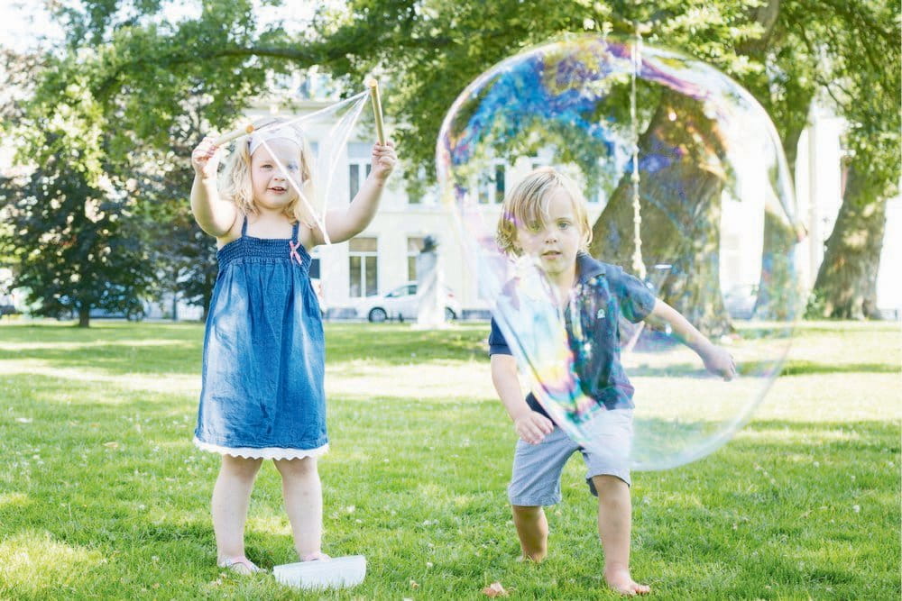Solidnie wykonane kije drewniane BUITEN SPEEL Bs toys połączone bawełnianym sznurkiem tworzącym pętlę. Przy użyciu odpowiedniego płynu, pozwalają uzyskać naprawdę ogromne bańki mydlane. Rozmiary umożliwiające swobodną zabawę dzieciom.
