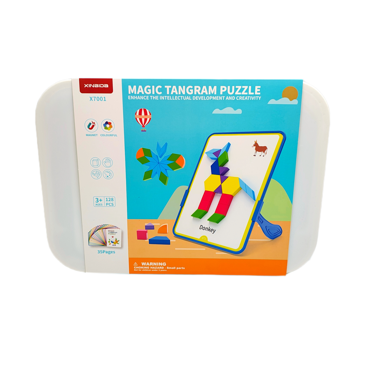 Tangram to chińska łamigłówka licząca co najmniej trzy tysiące lat. Jej podstawowa wersja to siedem elementów powstałych po rozcięciu kwadratu na mniejsze części, czyli dwa duże trójkąty prostokątne, dwa małe trójkąty prostokątne, jeden średni trójkąt, jeden mały kwadrat i jeden mały równoległobok. Nasza propozycja bazuje na tradycyjnym tangramie, jednak Magic Tangram to wersja zdecydowanie rozszerzona.