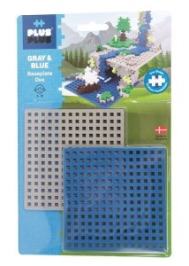 Zestaw 2 płytek konstrukcyjnych w kolorze szarym i niebieskim, kompatybilnych z klockami PLUS-PLUS w rozmiarze MINI.