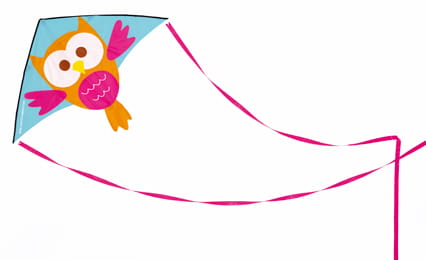 Latawiec SOWA sówka o nowoczesnym, oryginalnym kształcie, z dwoma długimi ogonami.