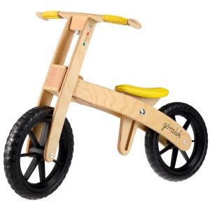 Drewniany GÓRALEK - rowerek biegowy, jeździk żółty naturalny.