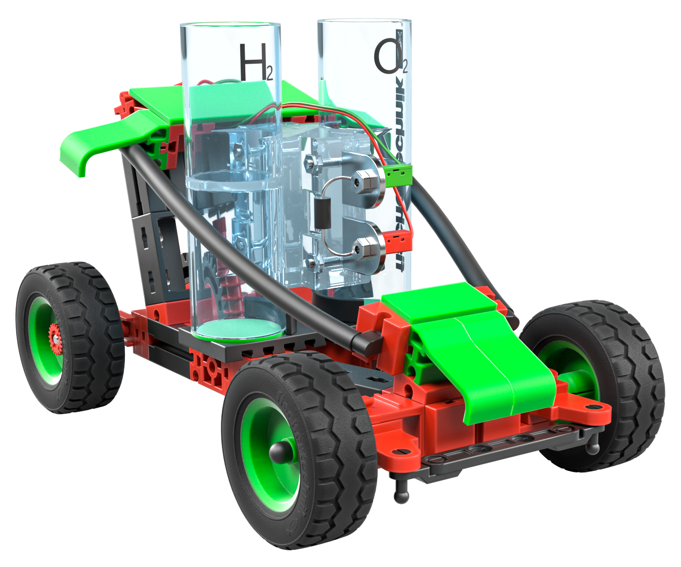 Zestaw konstrukcyjny "H2 Fuel Cell Car" jest idealnym dodatkiem rozszerzającym do zestawu eksperymentalnego "Green Energy". Dzięki niemu będziesz mógł budować i obsługiwać kolejne modele zasilane ogniwem paliwowym.